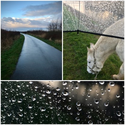 Het grazende geluid van Poownie in combinatie met de dansende druppels op mijn paraplu is bijna hypnotiserend. Al grazend en wandelend komen we aan het einde van het pad. Het is opgehouden met regenen. De laatste tien minuten wandelen we terug naar stal. Poownie is voldaan en ik ben gelukkig weer helemaal zen.