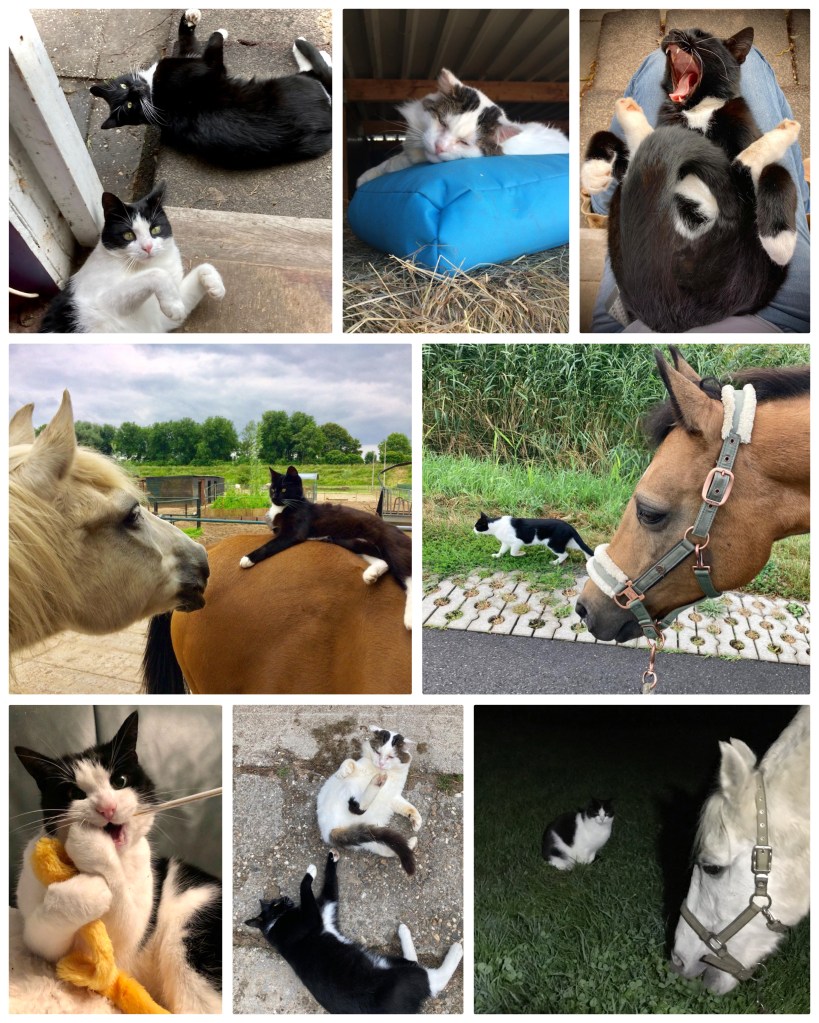 Inmiddels is ook duidelijk waar broer en zus eigenlijk thuishoren. De eigenaar is op de hoogte gebracht en besloot, na haar verhuizing met de paarden, de katten bij ons op stal achter te laten. Voor ons een mooie aanwinst. Het zijn drie totaal verschillende katten met bijzondere karakters. Ze zorgen voor veel hilariteit, speelse uren en vele warme knuffelmomenten. Een bijkomend voordeel, ze houden de boel ook nog eens muis-vrij.